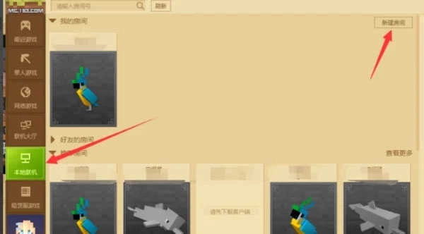 3、在弹出的界面找到“本地联机”,然后点击新建房间;